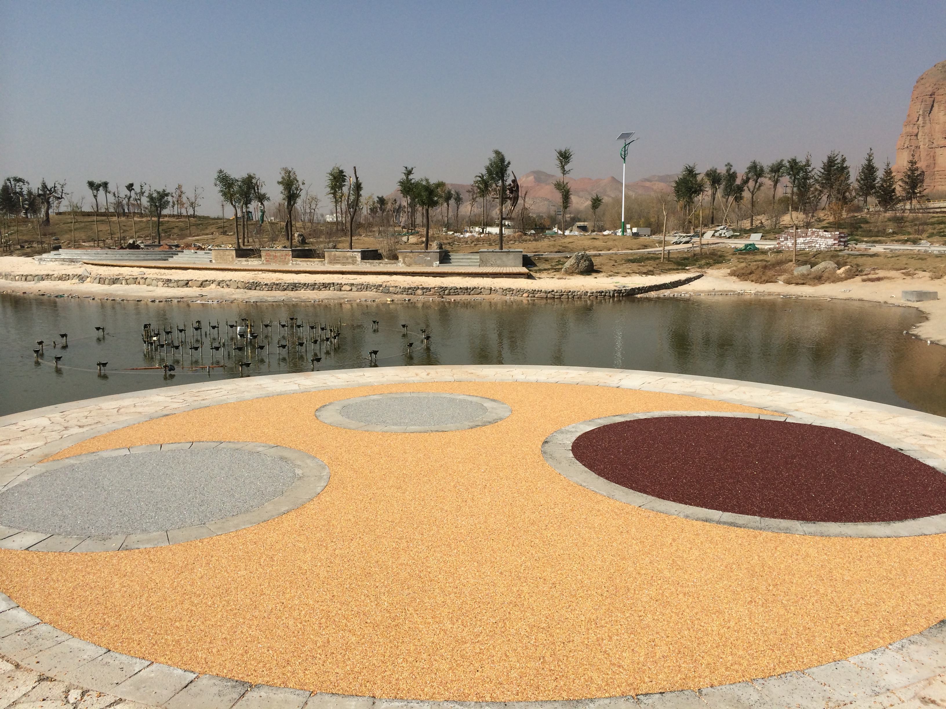 1.露骨料透水地坪增加城市可透水、透氣面積,加強(qiáng)地表與空氣的水分交換,調(diào)節(jié)城市氣候,降低地表溫度,有利于緩解城市“re島效應(yīng)”;